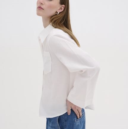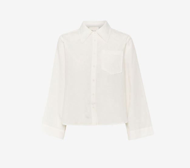 Den här stilrena och tidlösa vita skjortan är ett måste i garderoben. Perfekt att bära både på jobbet och under fritiden, och kan enkelt stylas med ett par jeans eller kjol för en komplett look.