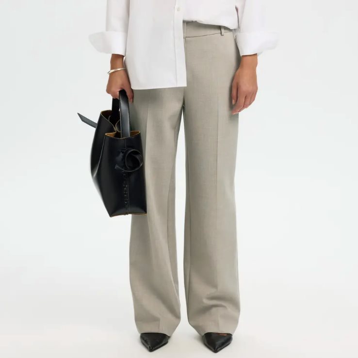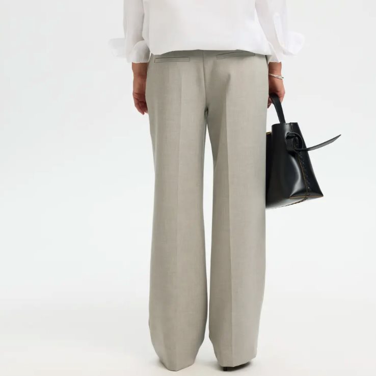 Byxorna är designade med praktiska bälteshällor, snedställda sidofickor och passpoalfickor baktill som adderar en klassisk skräddad känsla. Pressveck mitt fram ger ett polerat, strukturerat fall som gör dem perfekta både för kontoret och mer uppklädda tillfällen.