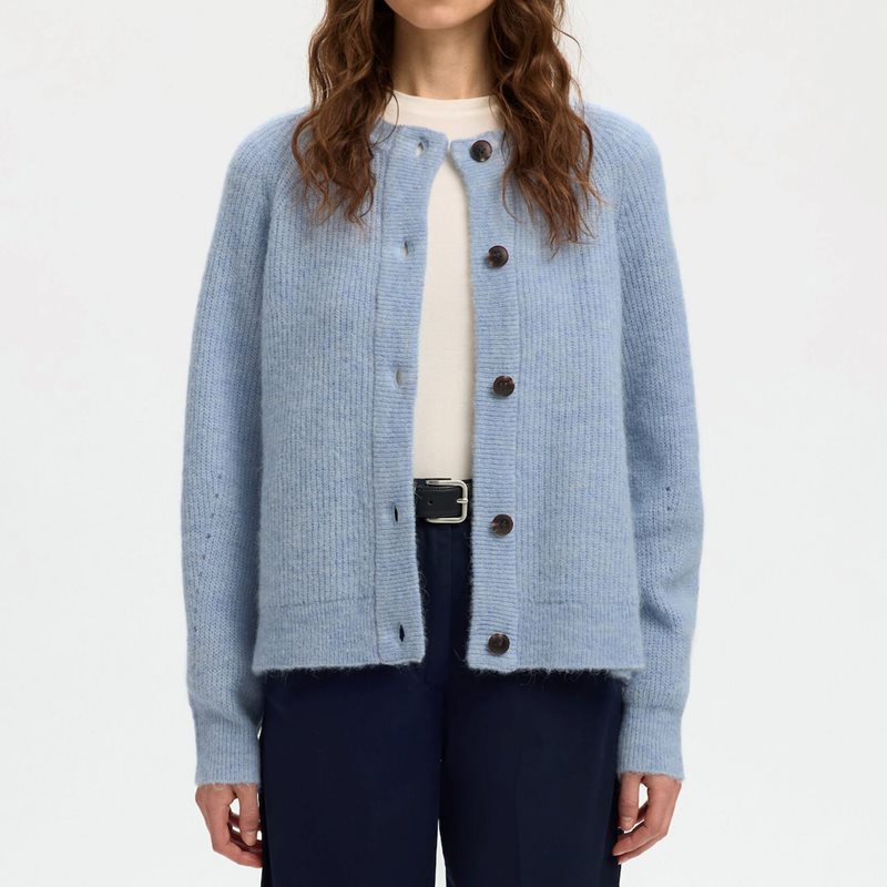 Upptäck den perfekta vardagskoftan, en lyxigt mjuk alpacka-ullblandning med en touch av stretch som ger både värme och fantastisk komfort. Koftan har en tidlös design med rund halsringning, knäppning framtill och långa raglanärmar med dekorativa drop-stitch-detaljer som ger plagget en elegant, handstickad känsla.