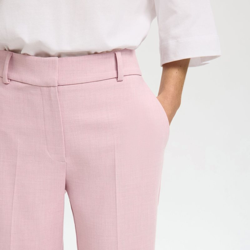 Byxorna är utrustade med praktiska sidofickor och passpoalerade bakfickor som förstärker det skräddade uttrycket. Pressveck mitt på benen ger en polerad finish, och den beskurna längden framhäver både sneakers, loafers och klackar – perfekt när du vill visa upp dina favoritskor.