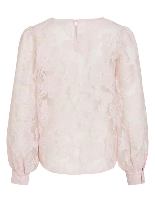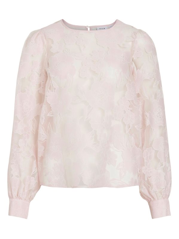 Denna eleganta långärmade topp har en rund halsringning med knapp och nyckelhålsöppning samt manschetter med två knappar. Modellen är tillverkad i ett transparent material och har normal passform. Längden är 64 cm i storlek 38 och ärmlängden är 64 cm i storlek 38.