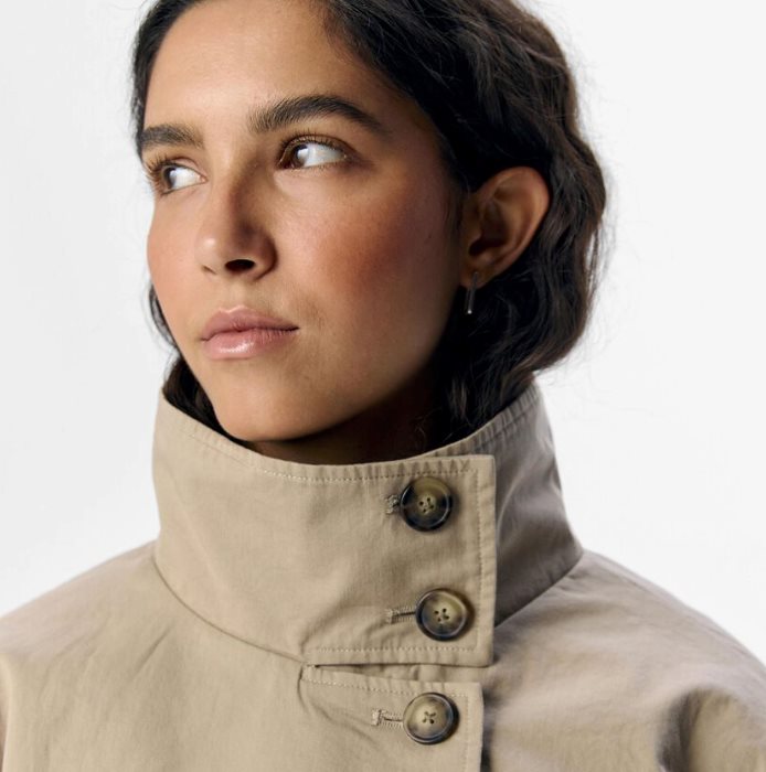 Kort trenchjacka dam i beige – ett tidlöst och lättburet ytterplagg som passar perfekt för övergångsperioder. Den korta modellen gör den enkel att kombinera med både jeans, byxor och kjol för en stilren vardagslook.