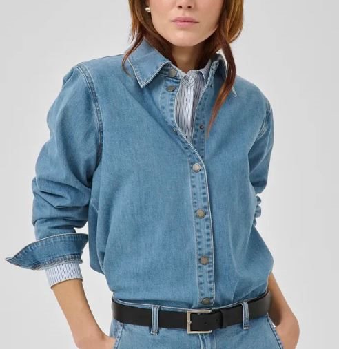Jeansskjortan passar perfekt tillsammans med byxorna LARA för en enhetlig och trendig denimlook, men är lika snygg att bära öppen över en topp eller instoppad i byxor eller kjol. Ett tidlöst val som fungerar lika bra till vardag som till en mer uppklädd stil.