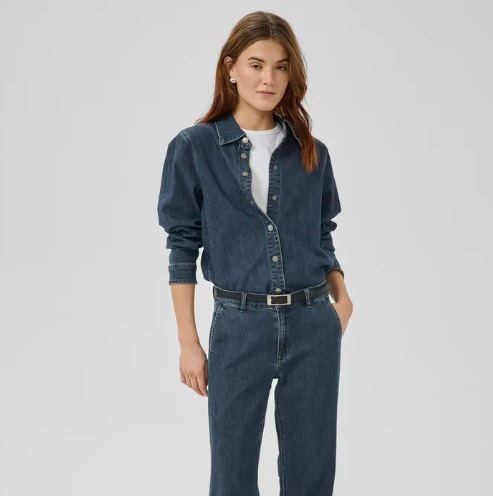 Jeansskjortan passar perfekt tillsammans med byxorna LARA för en enhetlig och trendig denimlook, men är lika snygg att bära öppen över en topp eller instoppad i byxor eller kjol. Ett tidlöst val som fungerar lika bra till vardag som till en mer uppklädd stil.