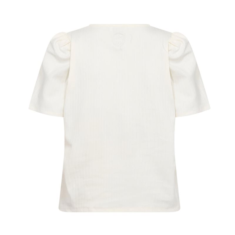 Soft Basic Tee är en klassisk T-shirt tillverkad av en bekväm och hållbar blandning av 73% ekologisk bomull, 21% polyester och 6% elastan. Den mjuka, lätt texturerade finishen ger en lyxig känsla, medan den runda halsringningen och de subtila puffärmarna skapar en modern och feminin siluett.