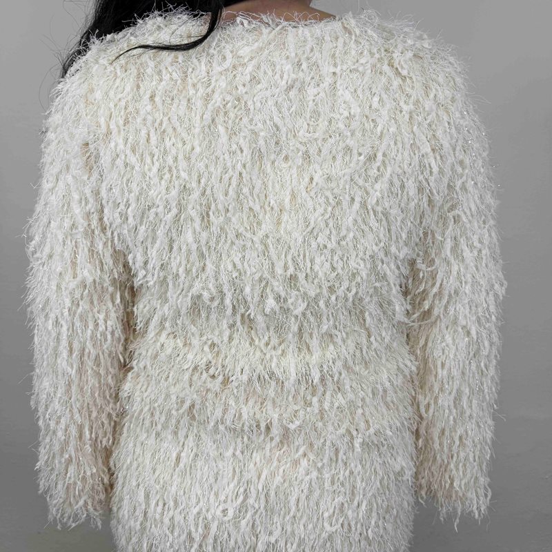 En unik och trendig långärmad blus med rund hals och fluffig textur som ger en pälsliknande effekt. De silvriga inslagen skapar ett diskret skimmer och ger blusen en cool och elegant look som passar perfekt till både vardag och fest.