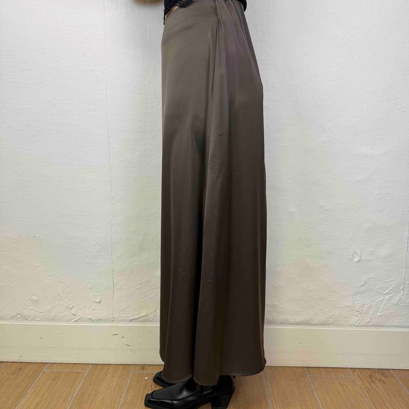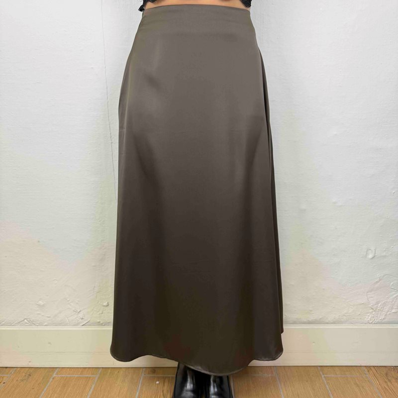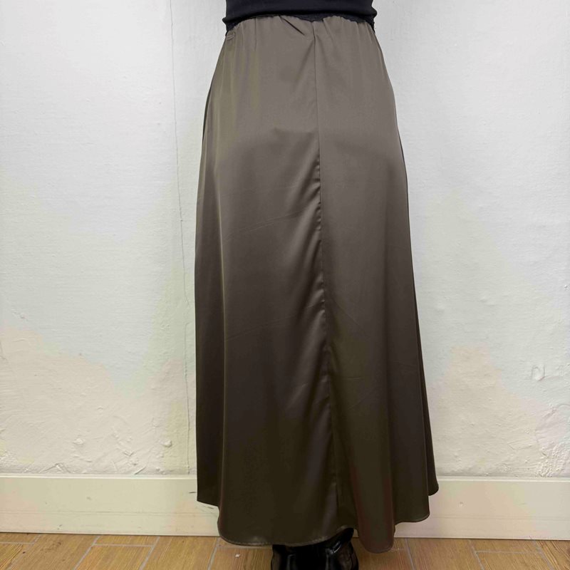 En lång kjol i satin med fint fall som skapar en elegant och lyxig silhuett. Kjolen stängs med dragkedja i sidan för enkel på- och avklädning. Den går perfekt att matcha med den tillhörande skjortan för ett stilrent set, men kan också bäras tillsammans med en enkel topp, stickad tröja eller blus för en mer vardaglig eller uppklädd look.
