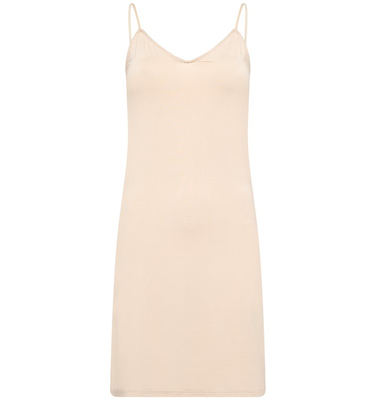 Ge dina klänningar det perfekta fallet med denna eleganta och mångsidiga underklänning. Med sina smala, justerbara axelband och en smickrande V-ringning ger den både komfort och en följsam silhuett under alla typer av plagg. Den korta längden gör den idealisk att bära under klänningar som behöver ett extra lager utan att tynga ner.