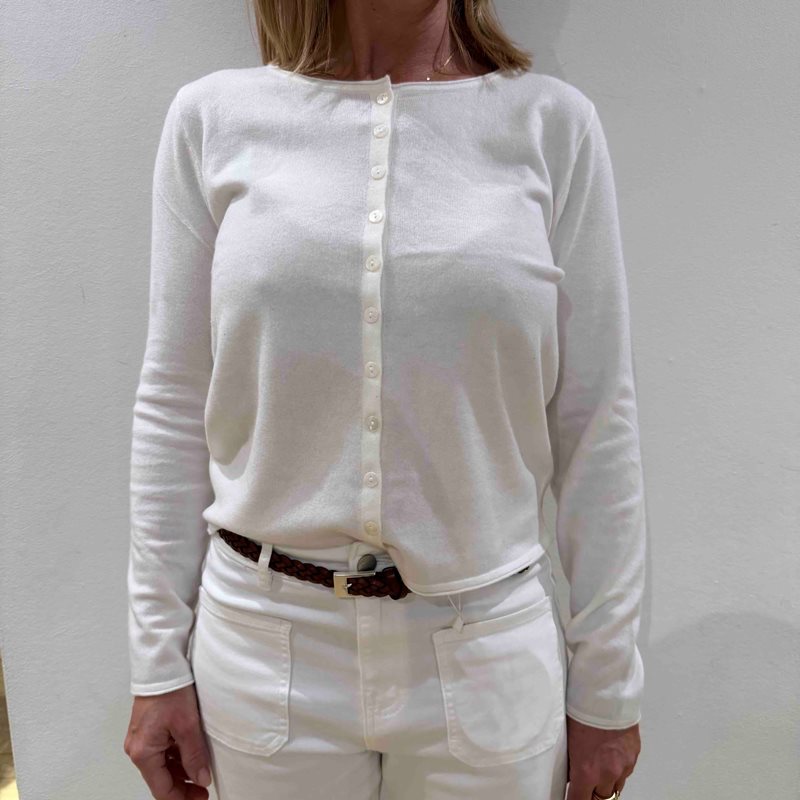 Tunn cashmerekofta dam med fina knappar och kroppsnära passform som ger en elegant silhuett. Koftan är otroligt mjuk och behaglig mot huden, ett lyxigt plagg som passar perfekt både till vardags och mer uppklädda tillfällen.