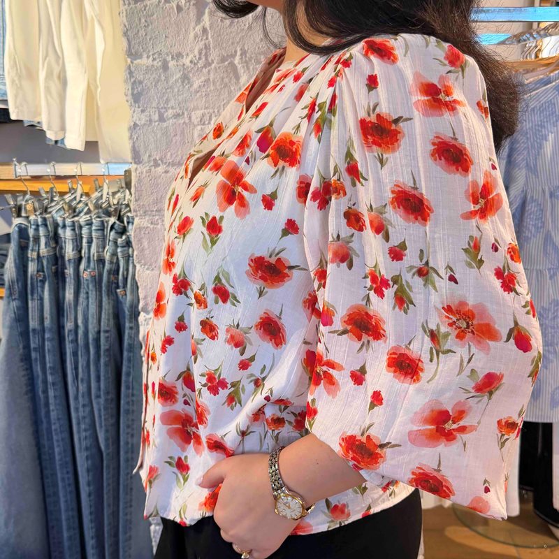 Blus dam med blomprint i tunn och lätt kvalitet, med fodrad front för extra komfort och täckning. Ett luftigt och stilrent plagg som passar perfekt till vardag eller fest, enkelt att styla med både byxor och kjol.