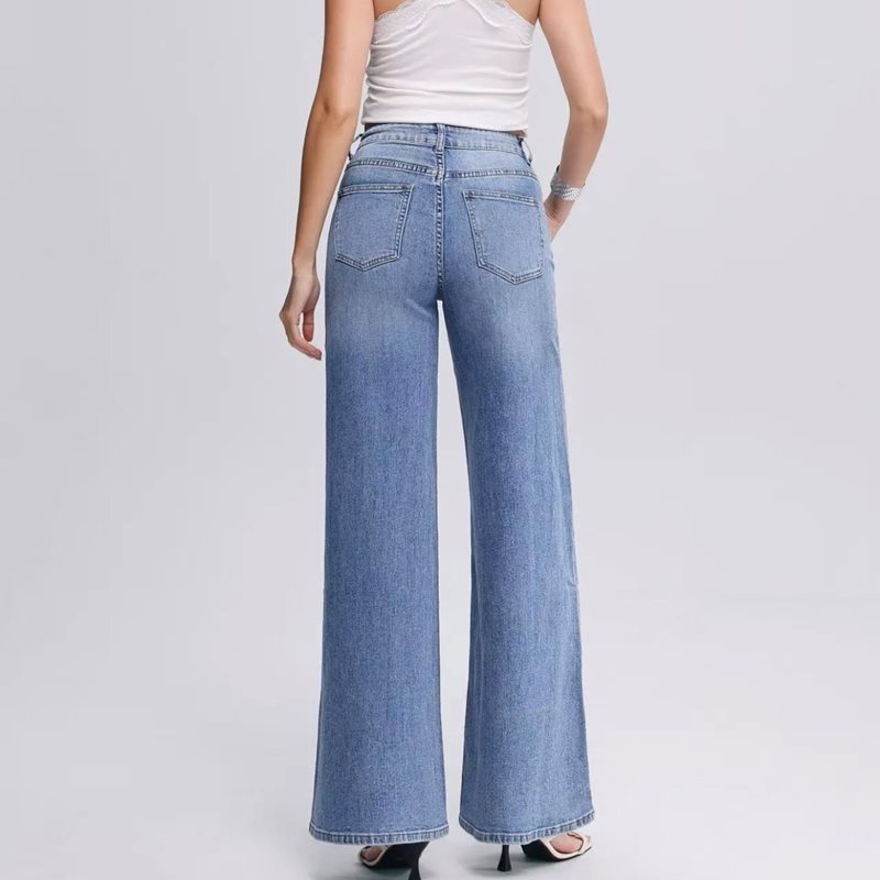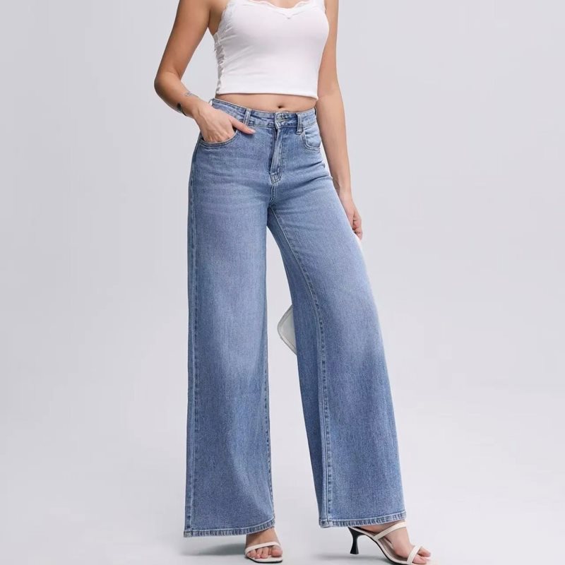 Mjuka och tunna vida jeans med hög midja i en fräsch ljusblå tvätt. Det lätta materialet ger en skön känsla och ett fint fall, perfekt för både vardag och varmare dagar. Den höga midjan skapar en smickrande passform och en modern siluett.