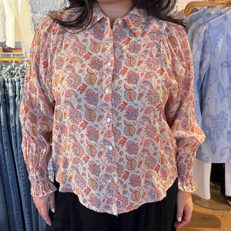 Paisley-mönstrad skjorta dam med färgstarkt och lekfullt mönster som ger en trendig och stilfull känsla. Perfekt för vardag eller fest, och enkel att styla med jeans, byxor eller kjol för en komplett look.