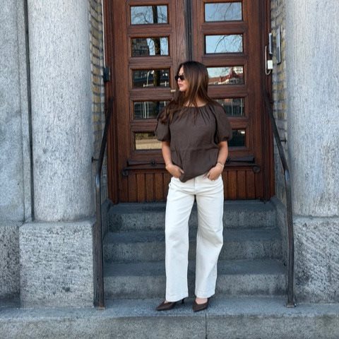 En söt och feminin blus perfekt för ljusare dagar. Denna kortärmade topp har en vacker samlad halsringning och en lös passform som ger en avslappnad men välklädd siluett.