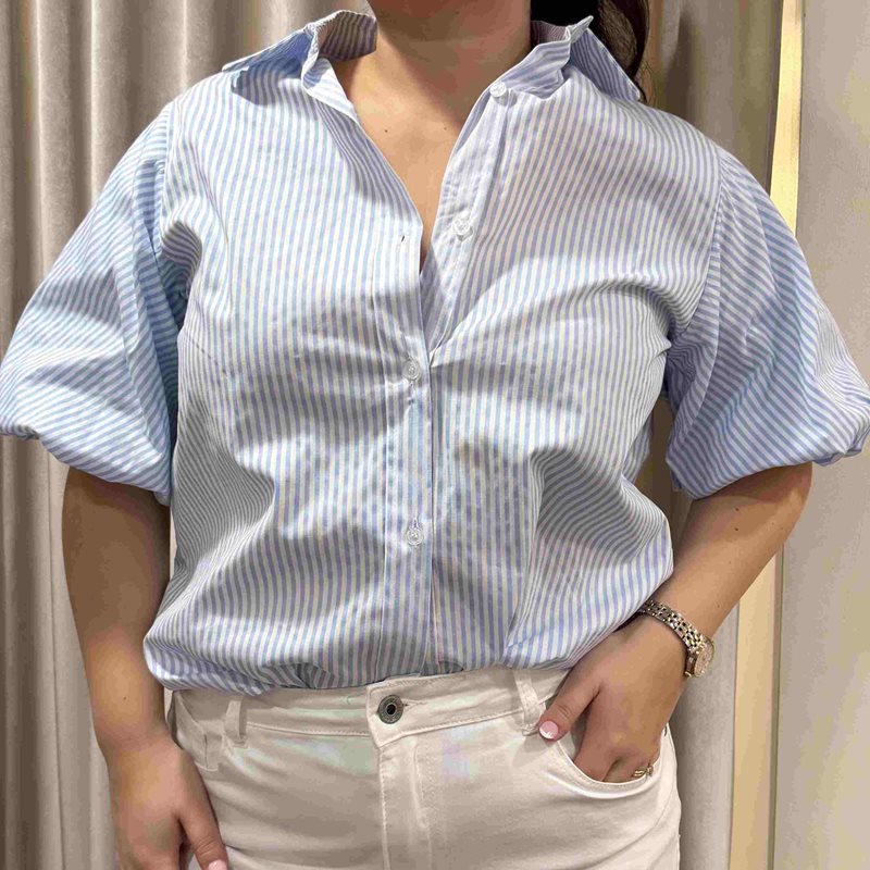Lätt och luftig bomullsskjorta med puffärmar som ger en feminin och lekfull detalj. Perfekt för varma dagar och enkel att styla till både jeans, kjol eller shorts.