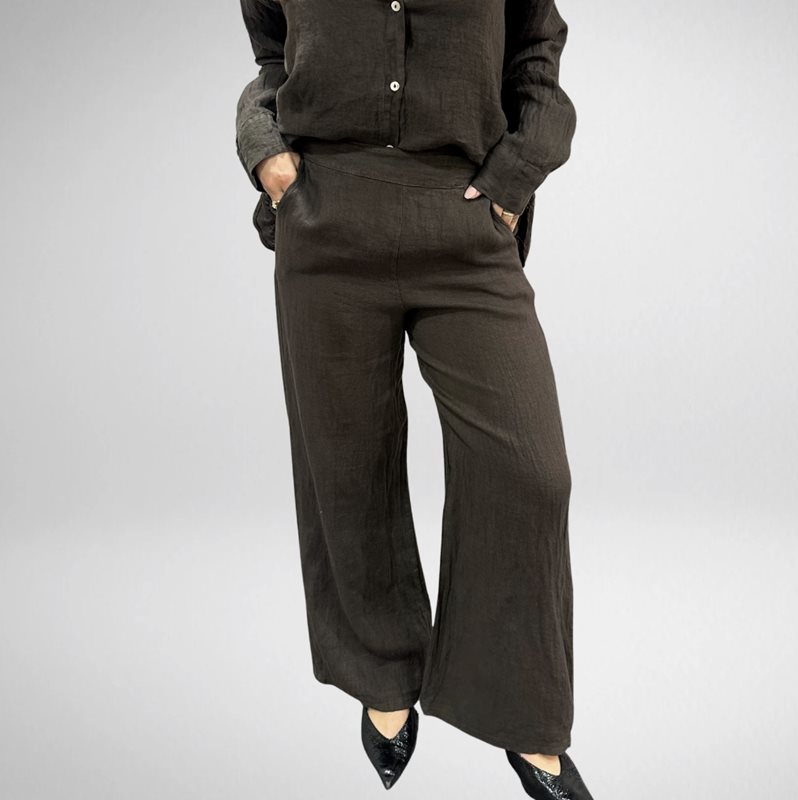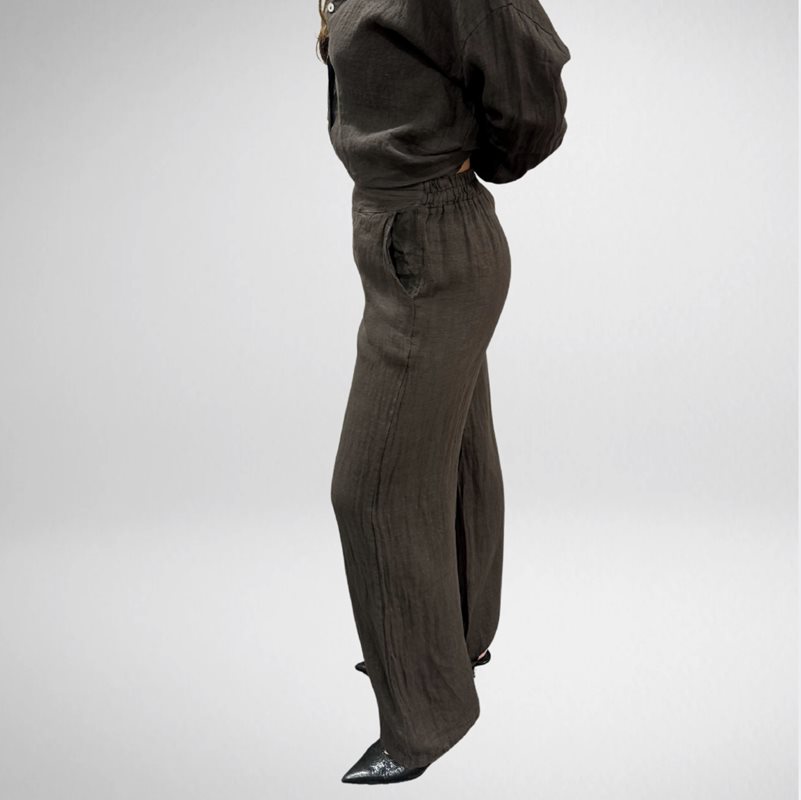 Stilrena linnebyxor i ett luftigt och naturligt material som ger en avslappnad men elegant look. Det lätta linnetyget är både svalt och bekvämt, vilket gör byxorna perfekt för varmare dagar. En tidlös garderobsfavorit som enkelt kan stylas både uppklätt och avslappnat.