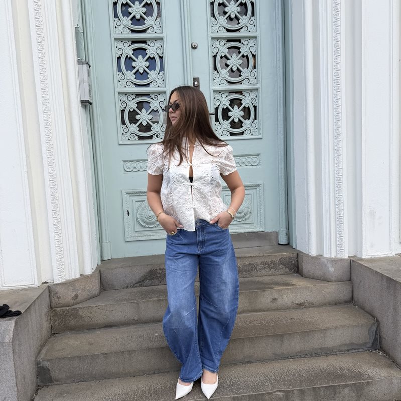 Den här broderade blusen med blommönster och knappar är ett elegant och detaljrikt plagg som kombinerar hantverkskänsla med en feminin och tidlös design. Det dekorativa blom-broderiet ger blusen ett levande uttryck och en subtil struktur som lyfter helheten på ett sofistikerat sätt.