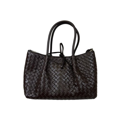 Trendig brun flätad handväska knytdetalj, stängs smidigt med magnet. Väskan kommer med ett justerbart axelband för flexibel bärstil och en avtagbar plånbok för extra funktionalitet. Med måtten 31 cm i längd, 17 cm i höjd och 21 cm i djup erbjuder den gott om plats för dina dagliga tillhörigheter, samtidigt som den behåller en stilren och sofistikerad look.