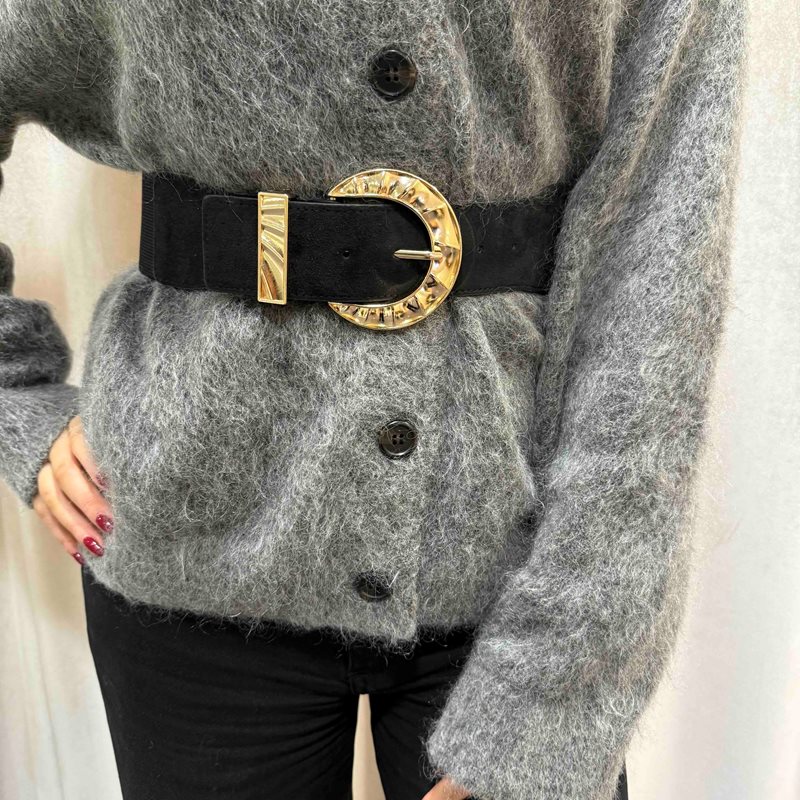 Det stora guldfärgade spännet fungerar som ett statement och skapar en modern, trendig och sofistikerad look. Perfekt att bära över klänningar, skjortor, kavajer eller stickade tröjor för att lyfta din stil med en chic och väldefinierad siluett.
