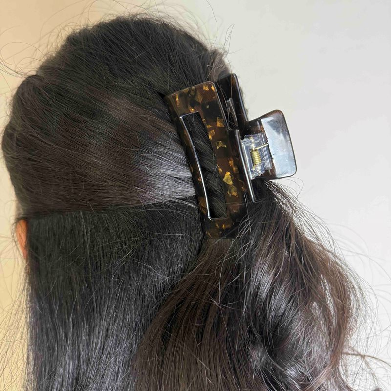 Hårklämman ger ett stabilt grepp och passar alla hårtyper, oavsett om du vill sätta upp håret i en vardaglig knut, halvuppsättning eller skapa en mer sofistikerad look till kvällen. Den varma bruna tonen gör den lätt att matcha med både neutrala och färgstarka outfits.