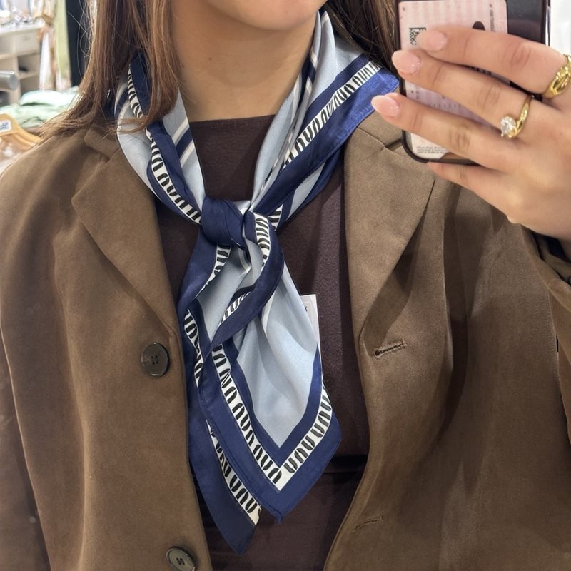 En sofistikerad liten scarf som ger en lekfull men elegant känsla. Den nätta storleken gör den enkel att styla – runt halsen, i håret eller som en chic detalj på väskan.