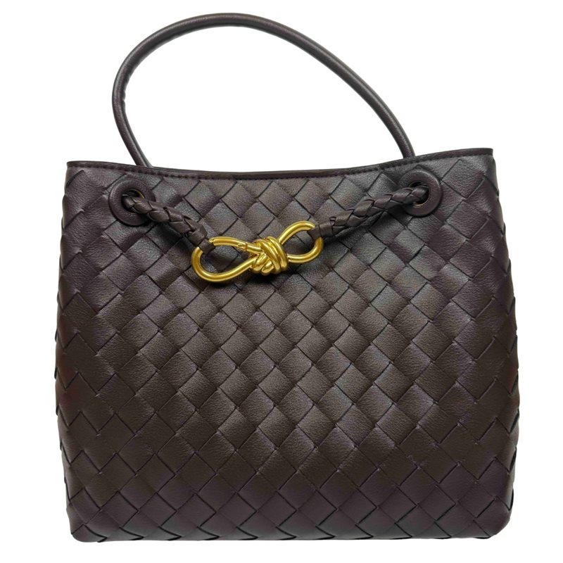 Flätad skinnväska med guldfärgad rosett