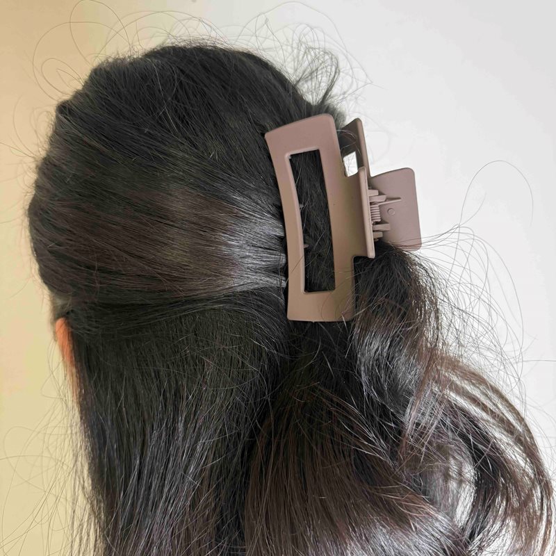 Denna rektangulära hårklämma i taupe är en stilren och mångsidig håraccessoar som passar perfekt till både vardags- och kvällslook. Den mjuka taupe-nyansen ger ett elegant och neutralt intryck som enkelt matchas med alla färger och outfits.
